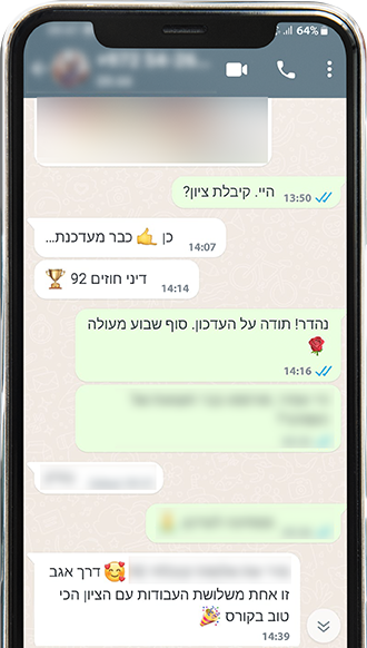 אנו נדאג להעביר אליכם את התוצר זמן מספיק לפני מועד ההגשה כדי שתוכלו לעבור עליה, לבקש תיקונים וגם להתעכב על כל מה שצריך לפני ההגשה, כדי שתרכשו בטחון לפני ההגשה.